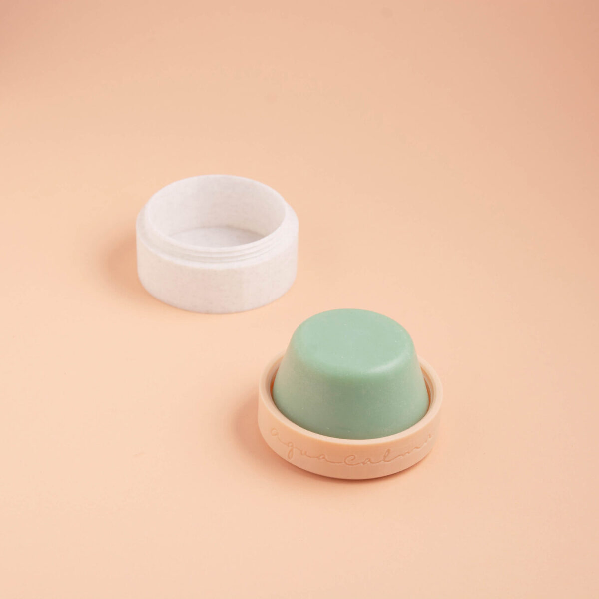 Porta sólido (shampoo,acondicionador, limpiador facial, dentífrico, etc) simple fabricado en PLA (plástico derivado de materias primas naturales y renovables vegetales, en este caso maíz no destinado para alimento). Contiene una base, una tapa y una rejilla interna rígidas. Cierre a rosca.